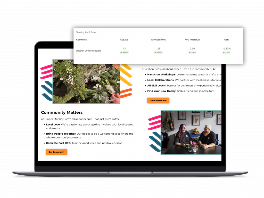 As we continue to optimise and evolve their SEO strategy, our focus remains the same: to keep Ginger Monkey’s name front and centre in Chester’s thriving coffee scene and ensure their business continues to grow organically, authentically and sustainably.